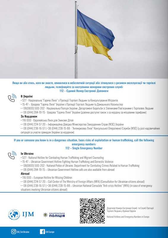 Водночас важливо знати, що робити у ситуації, коли є ймовірність потрапляння у небезпеку, а саме перш за все, звертатися на урядову «гарячу» лінію з протидії торгівлі людьми, запобігання та протидії домашньому насильству, насильству за ознакою статі та насильству стосовно дітей – 15-47.